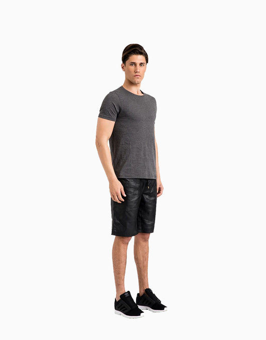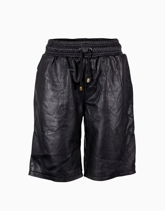 - Black Lambskin Leather Shorts